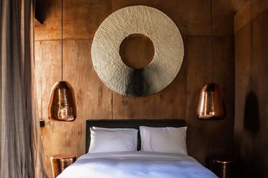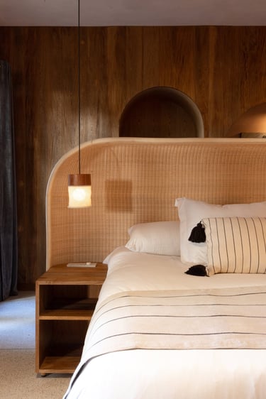 • Design Elements to Note: Neutral, earthy palettes and subtle details like woven textiles and clay accents give this hotel its unique charm.