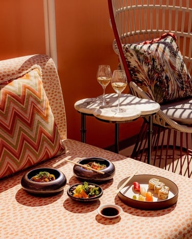 Design isn’t the only thing worth celebrating at Palm House—the dining is just as thoughtfully crafted. The hotel’s signature restaurant offers a fusion of Japanese and Peruvian flavors, led by Executive Chef Jerry Ayala. Expect dishes that are as visually stunning as they are delicious, from fresh ceviches to perfectly grilled seafood.