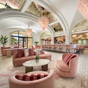 Step inside, and you’re welcomed into interiors that feel both polished and personal. The hotel’s design draws inspiration from its surroundings, creating an atmosphere that is equal parts grand and inviting. Think soft ocean tones, vintage-inspired furniture, and statement lighting that nods to Palm Beach’s glamorous past.
